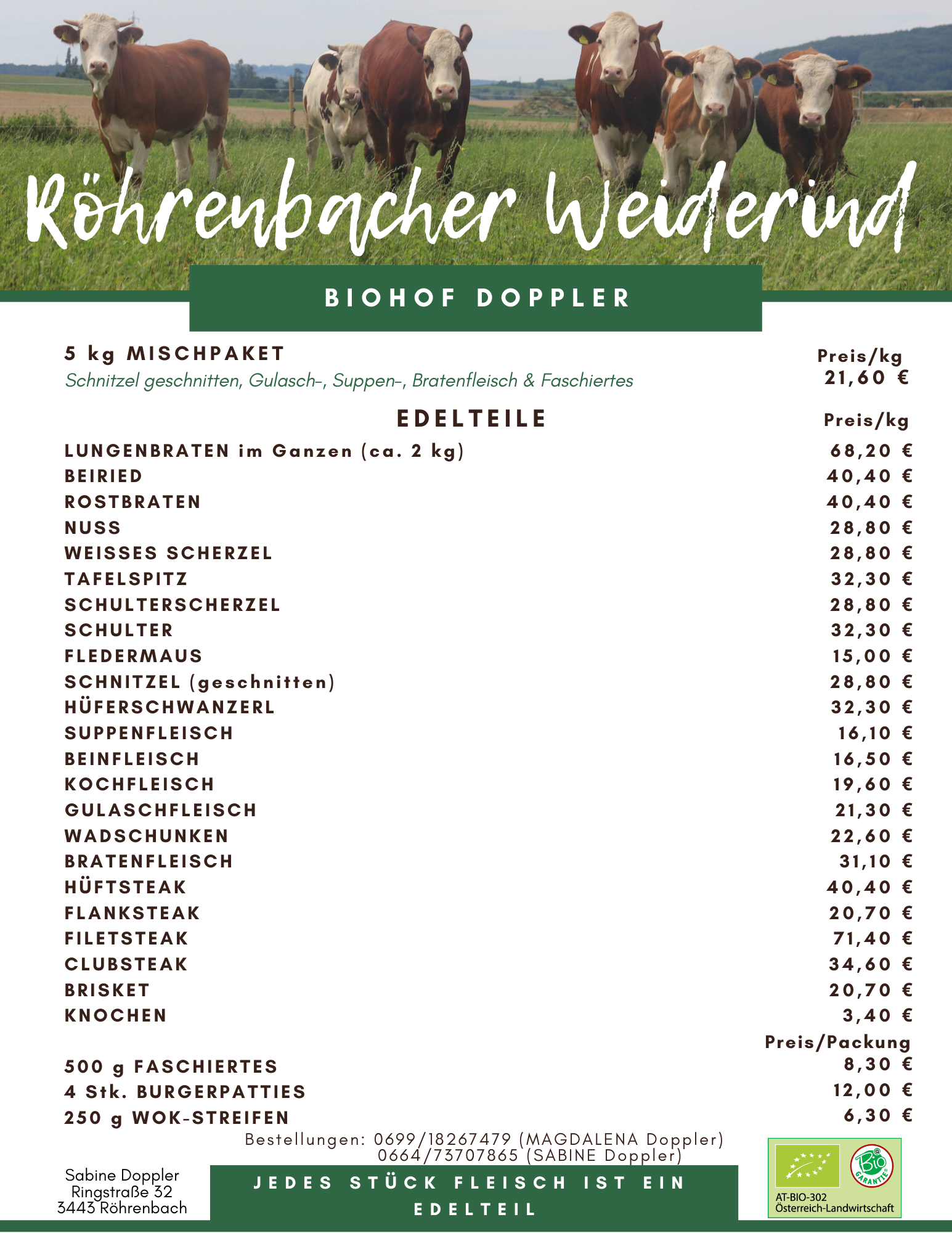 Bitte beachten Sie, dass wir nur eine limitierte Menge an Rindfleisch haben. Wir bitten rechtzeitig um Vorbestellung.